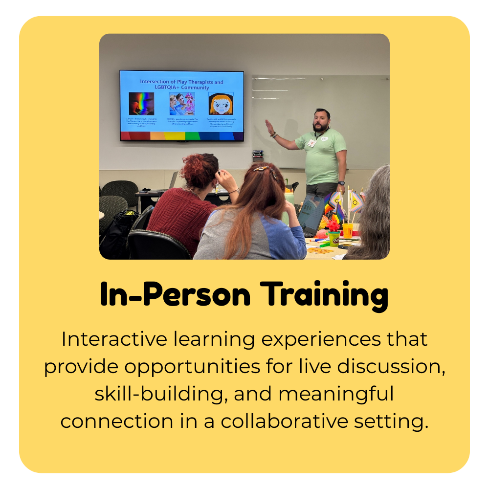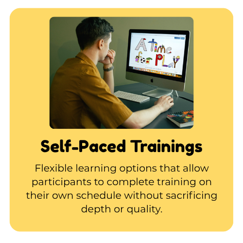At A Time for Play, we understand that every professional, organization, and schedule is different. That’s why we offer a variety of training formats, so you can learn in the way that works best for you