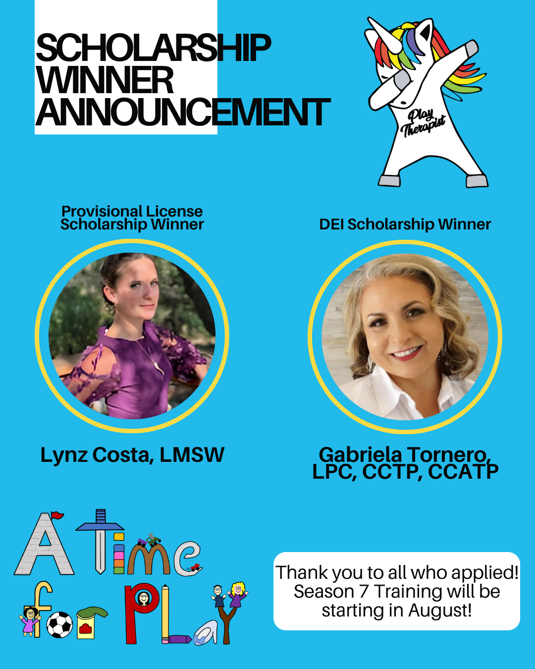 At A Time for Play, we believe that access to high-quality play therapy training should not be limited by financial barriers. Through the generosity of our community, we are able to award two scholarships each year and provide discounts throughout the year to clinicians who are passionate about serving children and families.